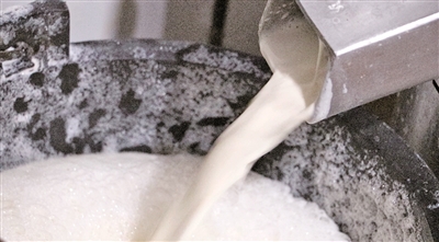 制作豆腐的过程,每一步都藏着老手艺的讲究。将泡了一夜的大豆倒入粉碎机,磨成浆糊,滤去豆渣,挤出豆浆,煮熟后豆香四溢。
