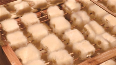 毛豆腐晒过一日后,蘸上高度白酒,裹上辣椒面、花椒面等香料,用菜籽油封存,便制成可长久保存的腌豆腐,成为刻在许多人记忆里的家常味道。据杨汝平介绍,每年10月至次年春节前后是销售旺季,高峰期她家每日消耗黄豆1000斤,日均生产毛豆腐500斤、白豆腐800斤,月收入可达1.3万余元。这门百年手艺不仅留住了舌尖上的乡愁,更磨出了村民们生活的甜头。