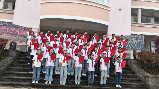 曲石镇双龙完小开展“红色征程·春满华夏”主题晨诵活动