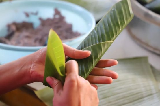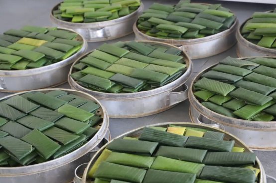 看似简单的泼水粑粑,制作过程却藏着傣族人民的匠心。制作时,首先要采来新鲜的芭蕉叶,洗净后切分成整齐的小方形;再选用上好的糯米粉,加入适量红糖反复揉匀,制成软硬适中的面团;随后在芭蕉叶上均匀抹一层油,取三分之一个拳头大小的面团放在叶片中央,轻轻折叠包裹严实,最后放入甑子中蒸制半小时,一道软糯香甜的泼水粑粑便大功告成。蒸熟后的泼水粑粑,松软有弹性,入口既有糯米的醇厚甜香,又夹杂着芭蕉叶的清新,口感层次丰富,让人回味无穷。