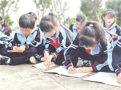 学校立足乡村实际打造特色教学模式,走出教室亲近自然,引导学生用纯粹的童真视角记录日常点滴。依托“是光”诗歌教室和专业教师团队,打磨出“倾听+鼓励+引导”的教学方法,每学期固定开展2到3次主题创作研学活动。近两个学期以来,学生人均积累原创小诗30篇以上。