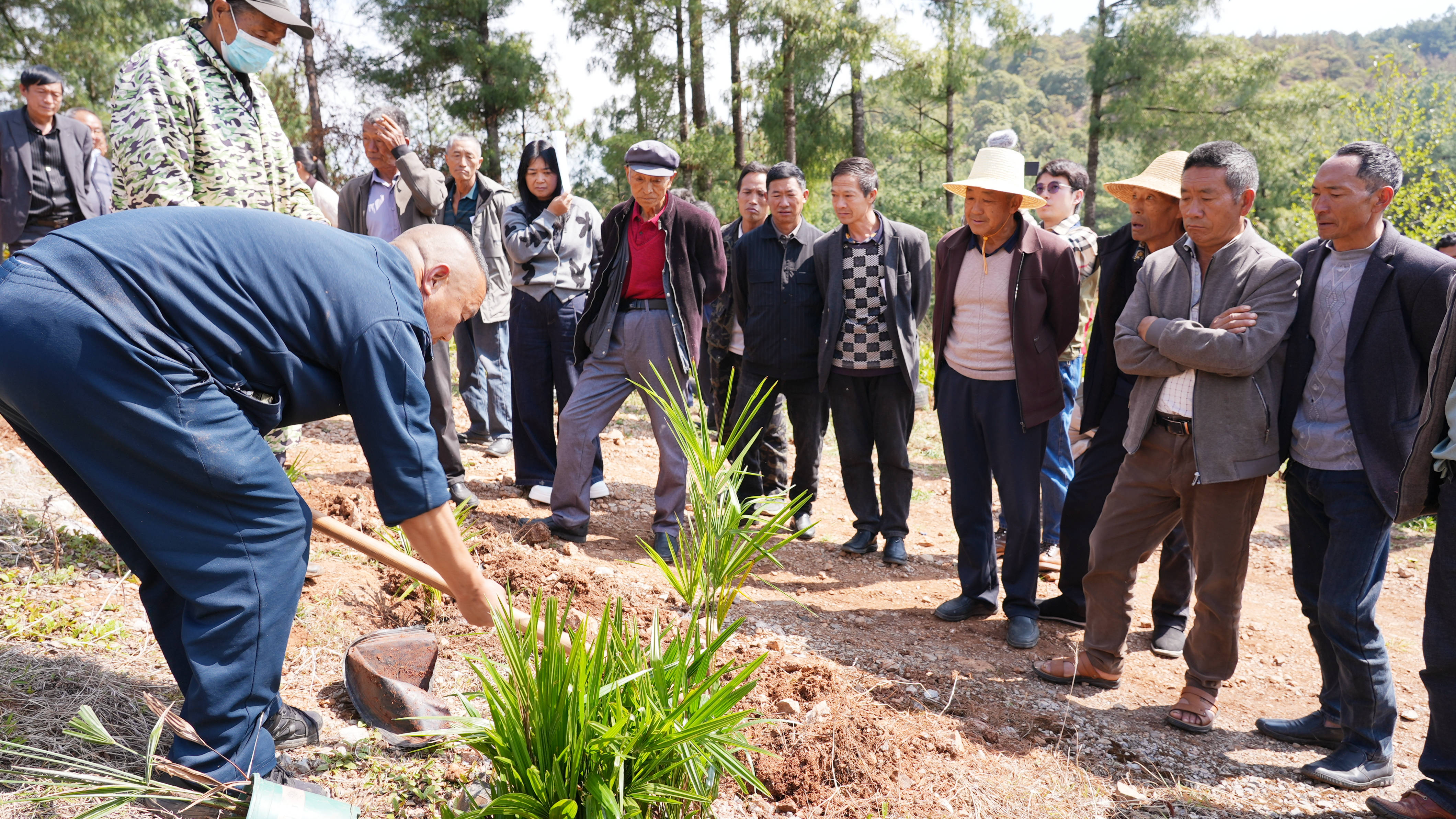 吴仕平在基地现场指导村民栽培甜棕苗时介绍:“甜棕包是我们保山的特色经济作物,只要管理到位,种植效益非常可观的。今天看到大家学习热情这么高,我特别欣慰,希望通过培训,能让乡亲们真正掌握种植技术,实现增收致富,为乡村振兴添砖加瓦。”