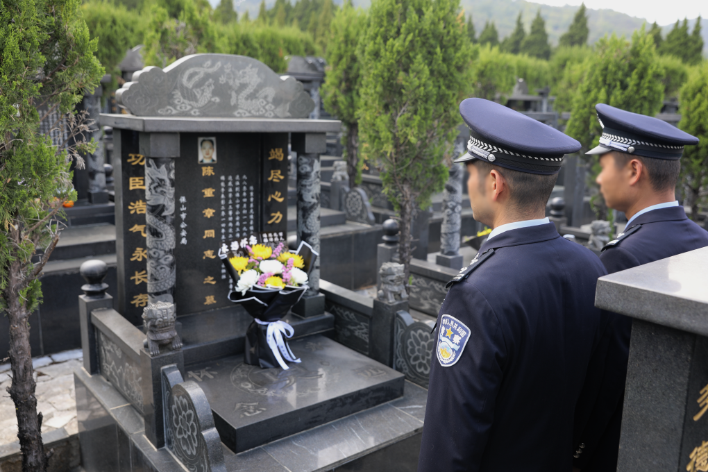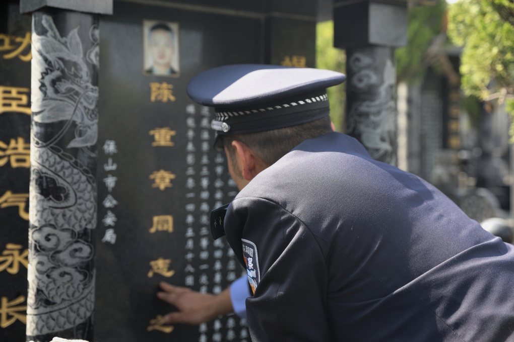 “重章,今年我们又来看你了。你不在的这些年,弟兄们都很想念你。你的女儿,你放心,她很听话、很懂事,学习上也很努力。她说,高考的时候,她要报考警校,以后和你一样当一名人民警察……”墓前,毒品查缉大队大队长李全帮一边擦拭墓碑,一边轻声诉说。山河无言,唯有春风掠过,发出窸窣的回响,像是来自天堂的回应。