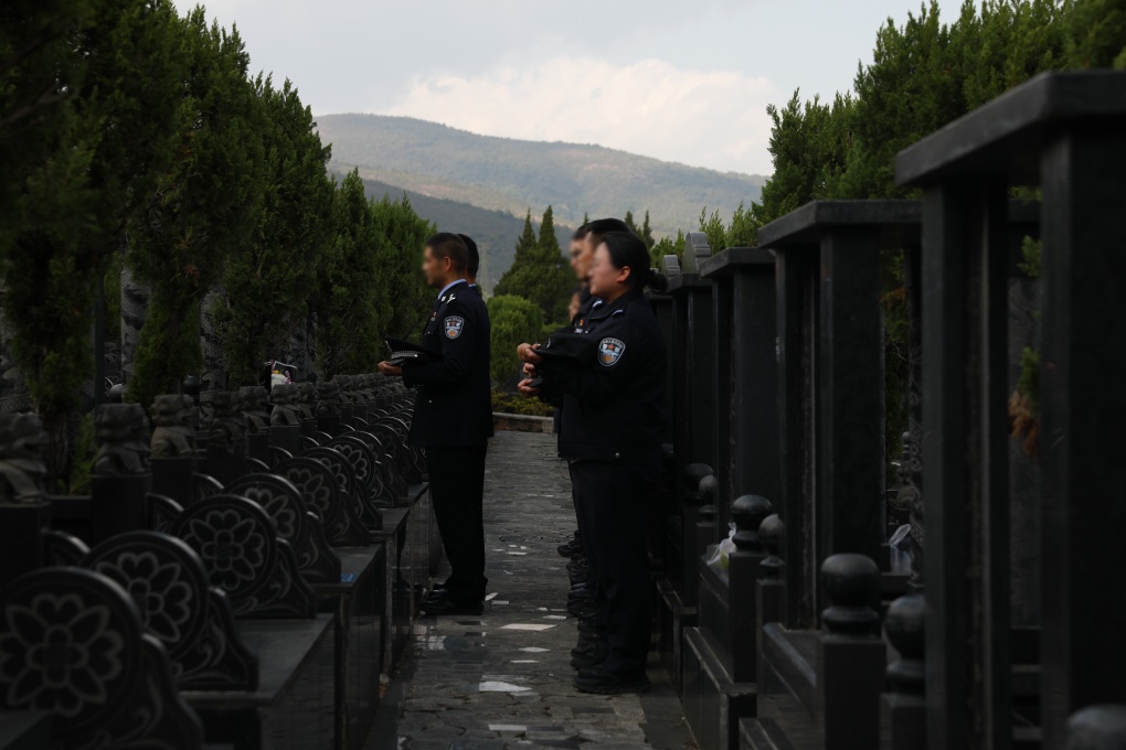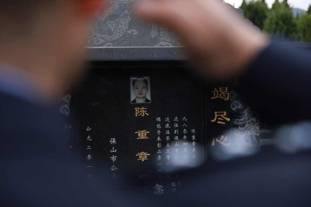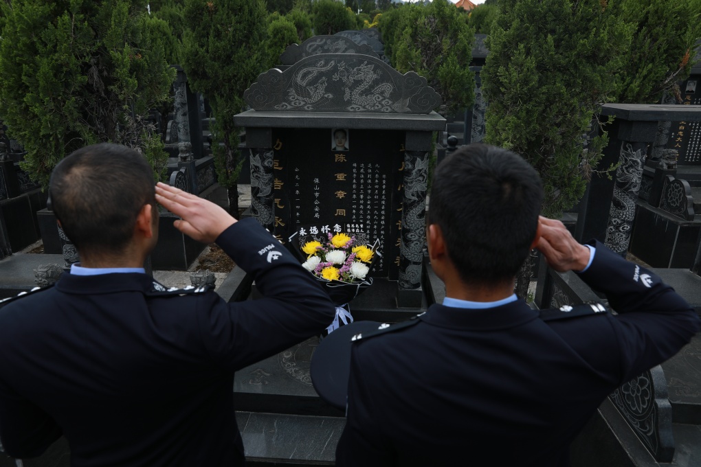 4月2日的云南保山阴云低垂。清明节前夕,保山市公安局禁毒支队毒品查缉大队(原流动查缉大队)的民警辅警们如约来到战友陈重章的墓前,深情悼念这位为禁毒事业献出生命的英雄。